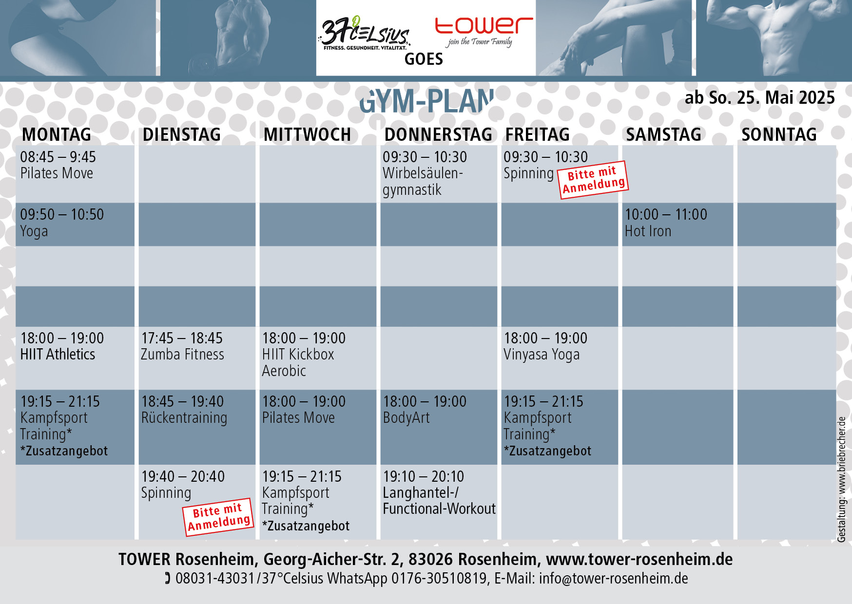 Mit unseren hochqualifizierten Trainern bieten wir Euch Kurse in sämtlichen Bereichen. Von Rückenfit über Wirbelsäulengymnastik und Yoga hin zu vielen Spinning-Kursen sowie funktionalem Training ist für jeden etwas dabei.